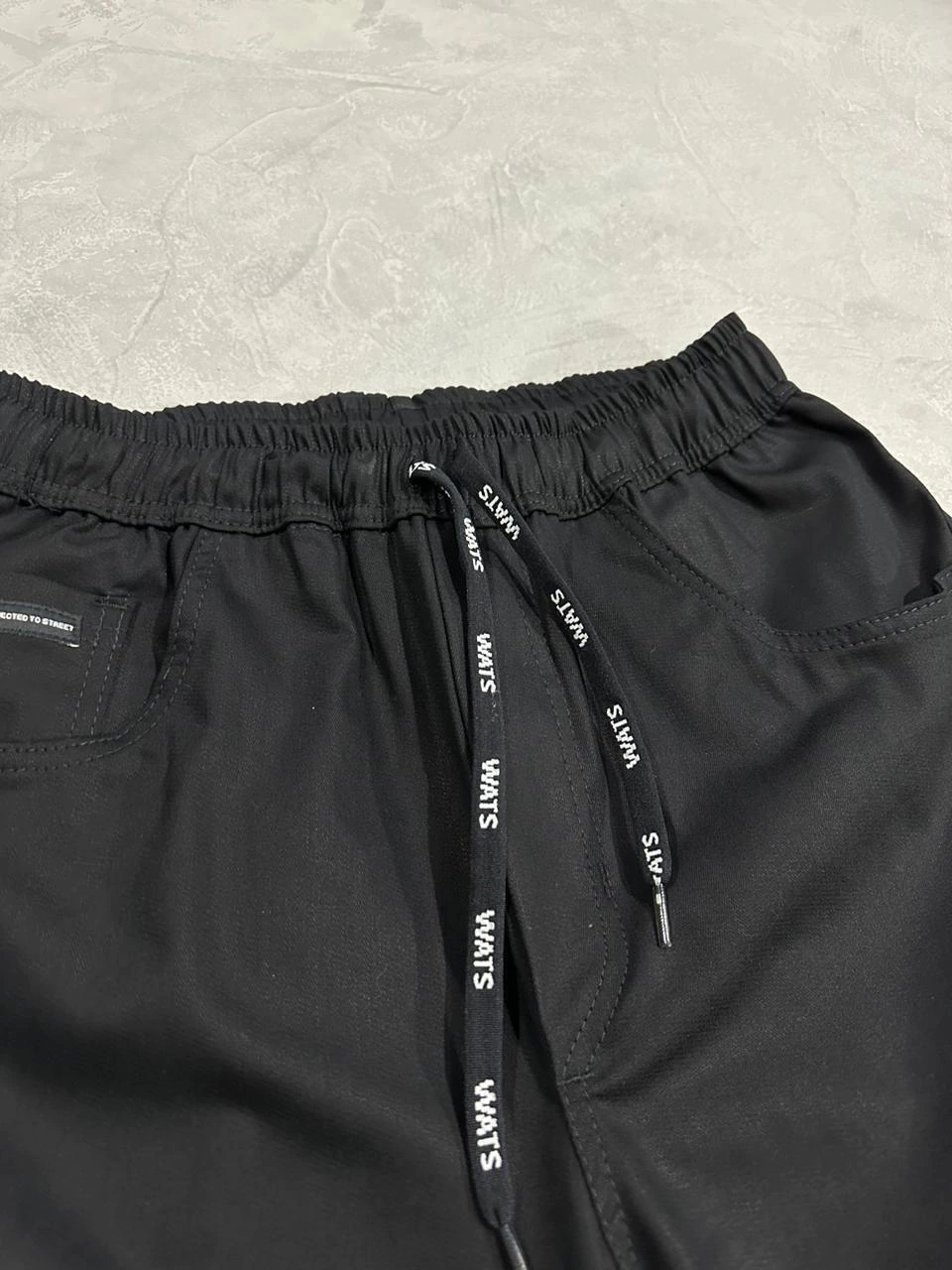 Possui elastano no cós, dois bolsos na frente e um bolsos traseiros